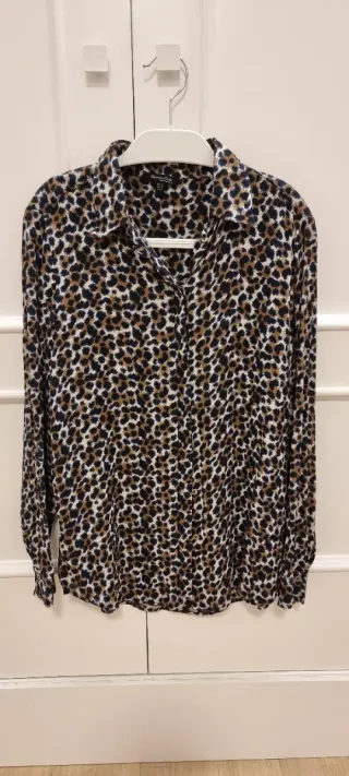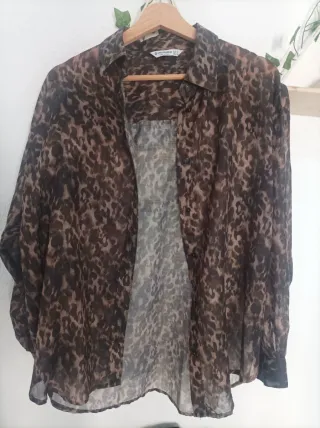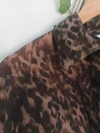 Estado: Buen estado Camisa ligera y transparente con estampado animal print, elegante y muy favorecedora. Perfecta para looks de día o noche, para llevar sola o con top debajo.