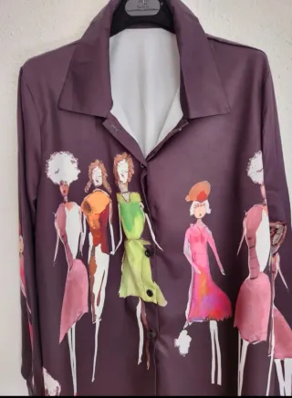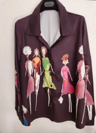 Camisa con estampado de figuras femeninas. Cuello camisero. Cierre de botones. Talla/ XL