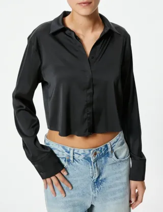 Camisa satinada de Stradivarius. Tiene manga larga y corte cropped top. Queda cortita y anchita, muy cómoda y ponible. Está como nueva, usada un par de veces. 📍Entrega en mano en Collado Villalba o envío.