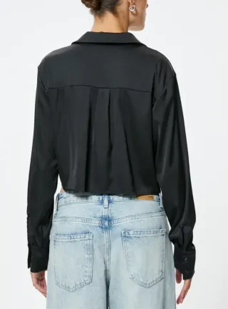 ZARA - Camisa negra satinada fruncida