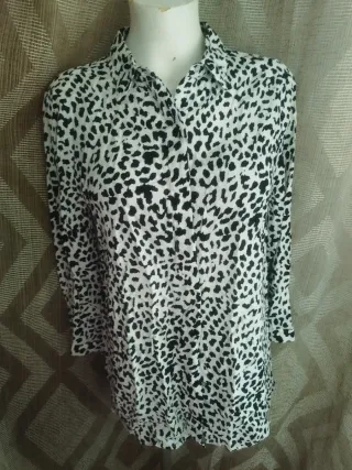 Camisa fluida y ligera, tejido con caída. Talla M, se podría utilizar para alguna talla mayor dependiendo del contorno de pecho. Las medidas son: - Axila a axila: 47 cm - Cintura: 47 cm - Cadera: 49 cm - Largo: 66 cm *No me puedo desplazar, sólo envío o recogida en mi domicilio* ** Descuento por lote **