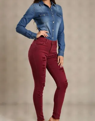 Conjunto Camisa Vaquera y Pantalón Burdeos