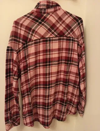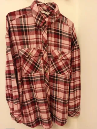 Sobrecamisa oversize de cuadros en tonos rosas. Dos bolsillos en la parte delantera. Cierre de botones. Stradivarius, talla S