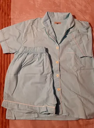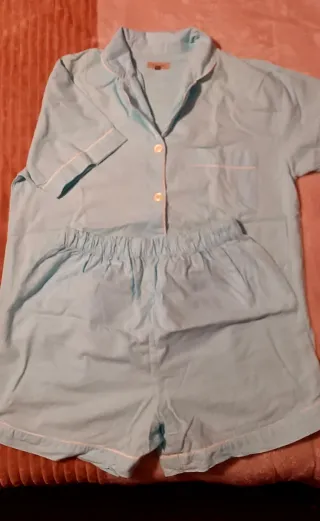 Conjunto de pijama de verano para mujer. - Camisa de manga corta con botones. - Pantalón corto con cintura elástica. - Ribete en contraste. Nuevo a estrenar Descuento si se recoge en Lugo, zona Fingoi