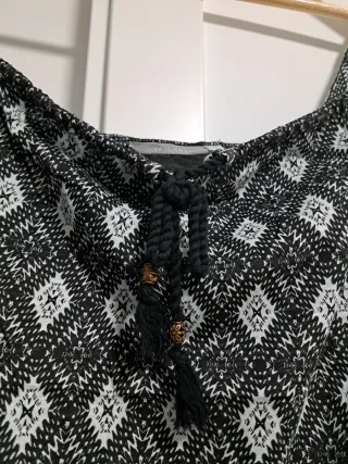 Camiseta de tirantes con un bonito estampado geométrico. - Diseño con rombos en blanco y negro. - Detalle de cordones en la parte delantera del escote.