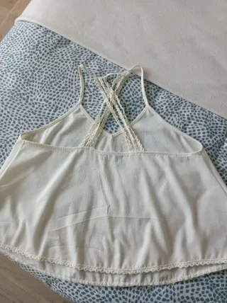 Camisa de la marca Anany con un diseño muy especial. - Precioso bordado en la parte superior. - Detalle de puntilla en cuello y bajo. - Sin mangas. Talla L,poco usado.