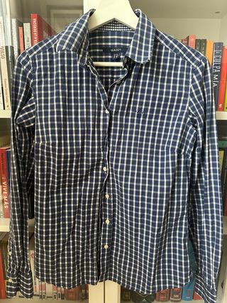 Camisa de manga larga con estampado de cuadros. T-42, 100% ALGODÓN, como NUEVA. - Cuello camisero. - Cierre de botones. - Bolsillo en el pecho.