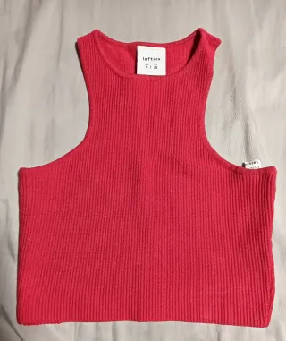 Top corto de canalé en color rojo, ideal para cualquier ocasión. - Diseño sin mangas. - Cuello redondo. - Tejido elástico y cómodo.