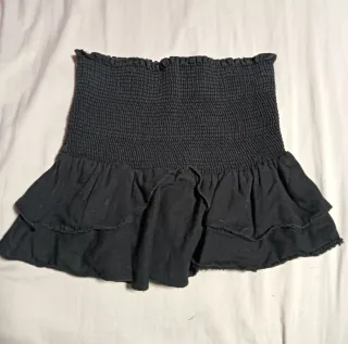 Camisa corta con estampado floral sobre fondo negro. Presenta un escote en V y ajuste fruncido en la parte delantera con cordones. - Diseño de flores blancas y amarillas. - Mangas cortas. - Bajo con cordones para ajustar. OFERTA: Todo lo que vendo a 6€ lo rebajo a 4€/prenda si se compran dos o más.