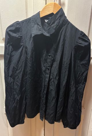 Camisa de mangas abullonadas Con manga larga con un bonito estampado floral en blanco y negro. - Cierre de botones en la parte delantera. Practicamente sin usar