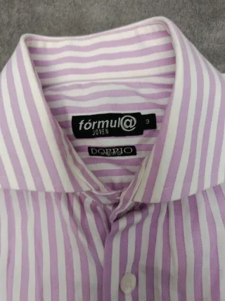 Camisa de vestir de la marca FORMUL@ JOVEN. - Color beige con finas rayas. - Talla 5.