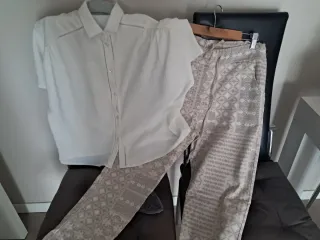 Camisa blanca de manga corta con cuello mao y pantalon . Talla M -uniforme para enfermeria o otros servicios - Diseño liso y elegante. - Cierre de cremallera en el cuello. - Tejido ligero y fluido.