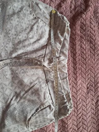 Camisa de tela fluida con botones. - Holgada de mezcla de modal y poliéster con cuello. - Mangas largas con puños. - Botones en la espalda. - Cierre de botones bajo la tapera - Color: crudo - Talla: S ( Da mucha talla). - Largo: 71 cm - Ancho sisa: 53 cm. En perfecto estado. Usada una sola vez. En Zaragoza, recoger en zona Delicias o centro