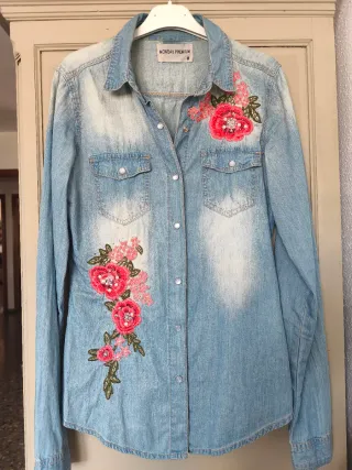 Camisa vaquera con diseño floral bordado en la parte delantera. - Mangas largas. - Cierre de botones. - Bolsillos en el pecho.