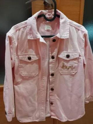 Camisa vaquera de color rosa para niña, talla M (equivalente a 9-10 años). - Detalle de bordado con la palabra love en el bolsillo. - Cierre de botones. - Dos bolsillos en la parte delantera.