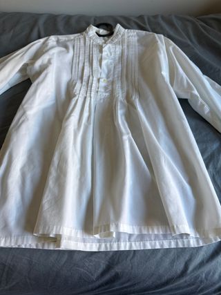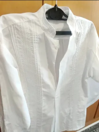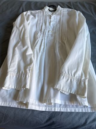 Camisas blanca de manga larga para niño, ideal para fallas. Tallas 10 y 12 20 euros cada una. - Cuello mao. - Delantero con plisados. - Cierre de botones.