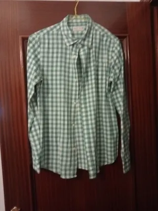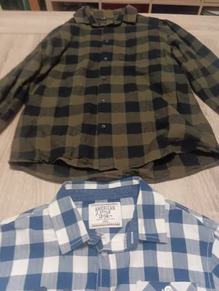 Conjunto de dos camisas de cuadros. - Una camisa de cuadros en tonos verdes y negros. Talla 10 años. - Otra camisa de cuadros en tonos azules y blancos.Talla13/14 años Cada una a 6 euros. Las 2 a 10 euros. Se pueden combinar con pantalones etc en mi perfil.