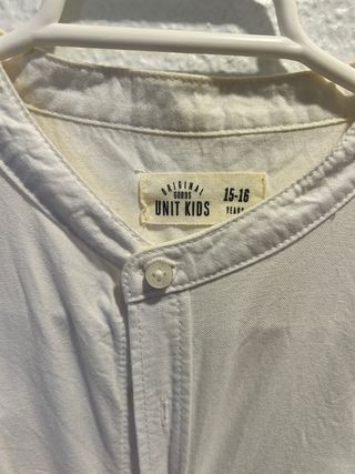 ¡Ideal para eventos o para el día a día! Vendo camisa blanca de manga larga para niño/adolescente de la marca Unit Kids (El Corte Inglés / Hipercor). • Estilo: Cuello mao (sin solapas), muy moderno y cómodo. • Talla: 15-16 años (ver etiqueta en fotos). • Detalles: Bolsillo decorativo sutil en el pecho y botones blancos a juego. • Estado: Muy buen estado, usada en contadas ocasiones. Tela fresca y fácil de planchar. • Versátil: Queda genial tanto con vaqueros como con pantalones tipo chino o bermudas. Medidas aproximadas si se solicitan. Hago envíos rápidos.