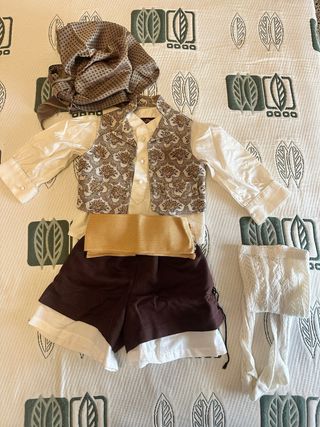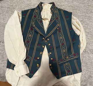 Conjunto de chaleco y camisa para fiestas falleras, ideal para niños 15€ o completo 35€ Se aceptan ofertas - Chaleco con estampado de rayas verdes y motivos florales. - Camisa de manga larga en color crema. - Tallas disponibles: 4, 6 y 8 años.se aceptan ofertas
