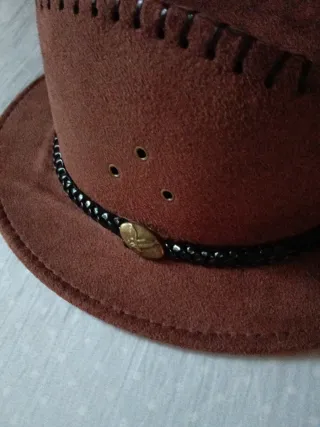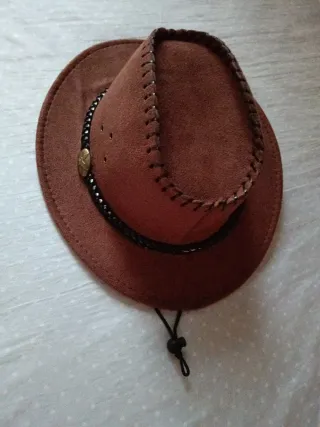 NUEVO accesorio para disfraces o juegos/ CARNAVAL - Material tela/forro tipo ante - Detalle cordón trenzado negro - Adorno metálico - Costuras decorativas en el ala - Cordón ajustable para la barbilla En mi perfil varias prendas para armar look de: - cowgirl: camisa vaquera, camisa de cuadros, abrigo de borreguito, jeans azul o jeans en blanco y sombrero - cowboy: camisas para niño, de cuadros y camisa azul marino lisa, sombrero