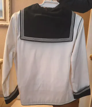 Traje de marinero para comunión de niño. Un conjunto elegante y clásico. - Chaqueta azul marino con detalles dorados. - Insignia bordada en la solapa. - Trenza dorada decorativa. - Puños con adornos dorados. Incluye la camisa y el pantalón Precio Negociable