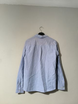 Camisa de manga larga para niño de la marca Hackett. - Color azul claro. -Tela oxfor - Detalle de número '1' bordado en la parte delantera. - Cuello camisero. - Cierre de botones. - Usado una vez para un evento.
