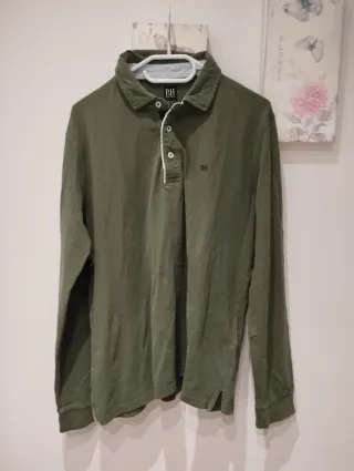 Dos polos de Pedro del Hierro en talla L. - Verde caqui en manga larga. Estado: Muy bueno. Sin desperfectos. - Burdeos y blanco, a rayas, en manga corta. Estado: Como nuevo. Se regala camisa blanca de manga corta. Estado: Bueno. Sin desperfectos, en la zona de la axila se ha quedado un color más amarillo por el desodorante. No se aprecia puesta. Todas las prendas son de Pedro del Hierro.