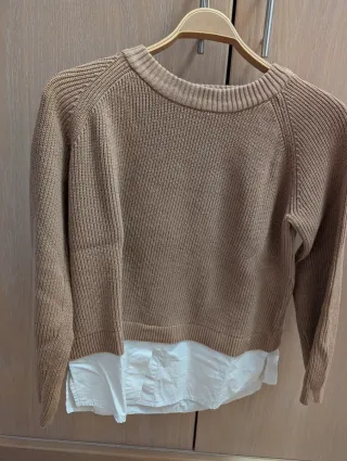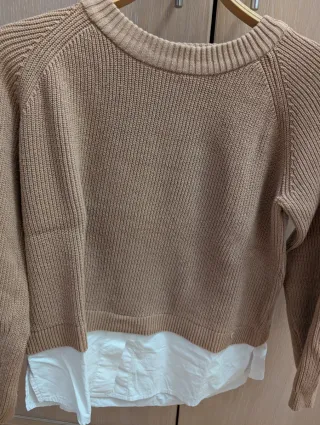 Jersey de punto de manga larga con detalle de camisa en el bajo. Color Beige. - 100% algodón.
