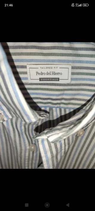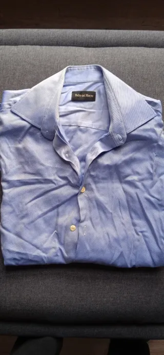Se vende bonita camisa de vestir y Sport azul y blanca de Pedro del Hierro. Regular fit, en una talla 45eu, 11us. Tacto muy suave, non-iron o poco planchado y super cómoda. Dimensiones: hombro a hombro 52ctms. Axila a axila 58 ctms. De cuello a abajo 75ctms. Largo mangas de 68ctms. Totalmente nueva, sin estrenar ni probar. Su precio nuevas es de 89€. Precio algo negociable. Envío a cargo del comprador. No envío contrareembolso. No hago intercambios por ningún otro producto lo o artículo. Acepto Paypal, Bizum, Wallapop. No escucho ofertas absurdas y bloqueo. Gracias