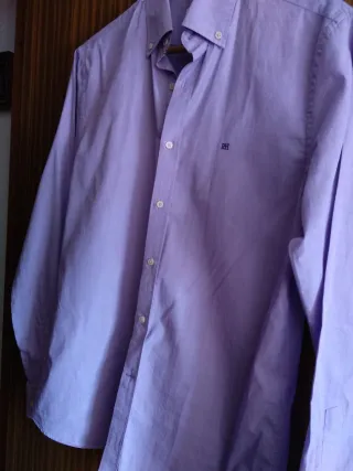 Camisa de vestir de la marca Pedro de Hierro en color morado. Es una prenda elegante y versátil. Talla M - Cuello camisero. - Cierre de botones. - Logo bordado en el pecho.