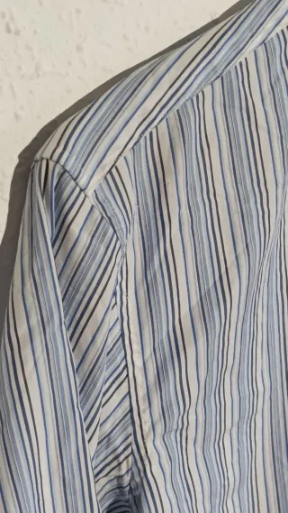 Camisa de manga larga con un diseño de rayas finas. Es una prenda clásica y versátil. - Cuello camisero. - Cierre de botones. - Bolsillo en el pecho. *PRECIO NEGOCIABLE* *ENVÍOS A TODA ESPAÑA*