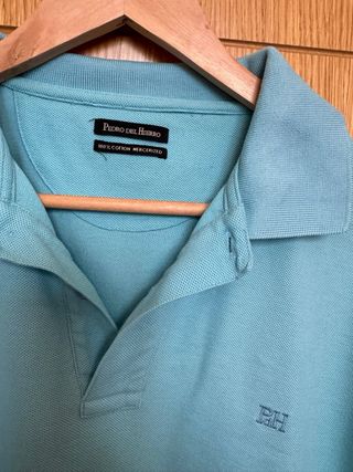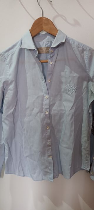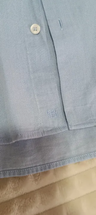 Camisa de manga larga de la marca Pedro del Hierro en color azul. Presenta un tejido texturizado y un discreto bordado con las iniciales de la marca en la parte inferior. - Cierre de botones. - Cuello clásico. Tengo muchas más prendas de esta marca, puede echar un vistazo en mi perfil y podria hacer un lote.