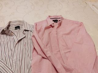 Dos camisas de la marca Pedro Hierro, una rosa y otra rosa niradita. Comi nuevas y listas para usar. Para gemelos - Las camisas son de manga larga. - Tienen un diseño a rayas. - Son de algodón.