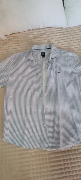 Camisa de manga larga con un diseño de rayas finas en azul y blanco. - Cuello clásico. - Cierre de botones. - Tejido ligero y transpirable. Tengo muchas más prendas de esta marca, puede echar un vistazo en mi perfil y podria hacer un lote.
