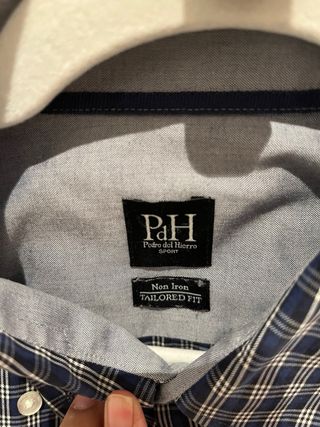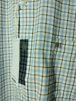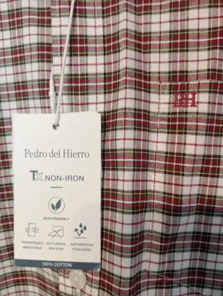 Camisa de cuadros de Pedro del Hierro totalmente nueva y sin estrenar. - Diseño de cuadros pequeños. - Cuello con botones. - Etiqueta de la marca visible.