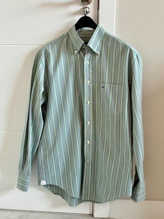 Elegante camisa de manga larga con un diseño de rayas verticales. Presenta un cuello clásico y puños. - Diseño de rayas azules y blancas. - Logo bordado en el pecho. Entrego en la plaza de Antón Martín o glorieta de embajadores. Precio no negociable. No bizum