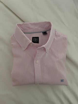 Camisa de vestir de manga larga de la marca Pedro del Hierro. Presenta un diseño clásico con cuello abotonado y un discreto bordado en el pecho. - Cuello con botones. - Manga larga. - Bordado de las iniciales de la marca en el pecho.
