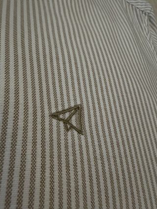 Camisa de vestir con un diseño de rayas finas en tonos beige y blanco. Un clásico para cualquier armario. - Cuello camisero. - Cierre de botones. - Manga larga con puños abotonados. - Pequeño logo bordado en el pecho. - Colección OOTO (Colección Out of the Office)