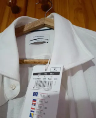 Camisa blanca de manga larga, ideal para cualquier ocasión. Es una prenda nueva con etiquetas.talla XL.marca de calidad pedro del hierro - Cuello clásico. - Cierre de botones. - Puños abotonados.