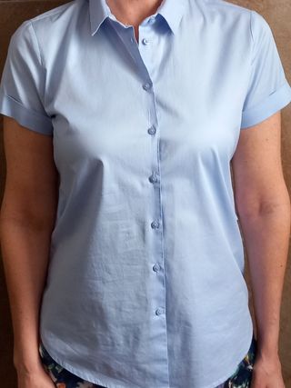 Camisa lisa azul celeste turquesa con puntitos. Perfecto estado, usada un par de veces. Medidas en fotos.