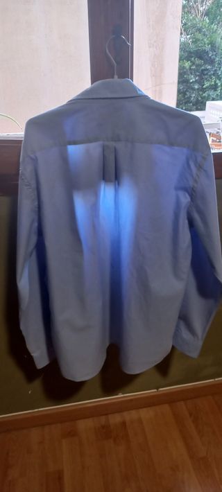 Camisa m/larga, mayormente azul, sin bolsillos delantero y 2 botones de ajuste puño