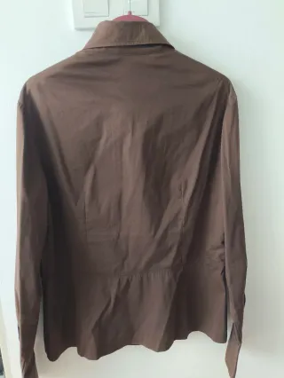 Elegante camisa de manga larga de la marca Roberto Verino. - Color marrón chocolate - Diseño con detalles plisados en la parte delantera. - Cuello camisero. - Cierre de botones, doble botón en el puño Ancho de sisa 51, hombro 44, cintura 44, largo 60