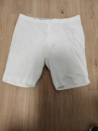 ¡Básico imprescindible para el buen tiempo! ☀️ Vendo estas bermudas blancas de corte tipo chino, perfectas para un look casual pero arreglado. Son muy versátiles y fáciles de combinar con camisas de lino, polos o camisetas. Color: Blanco óptico. Corte: Recto (Regular Fit). Detalles: Incluye trabillas para cinturón, bolsillos laterales y cierre clásico frontal. Estado: En muy buen estado, muy poco uso. Sin manchas ni roces. Ideal para: Verano, eventos de día, vacaciones o golf. 📦 Envío rápido y protegido. ¡Echa un vistazo a mi perfil para aprovechar envíos combinados!