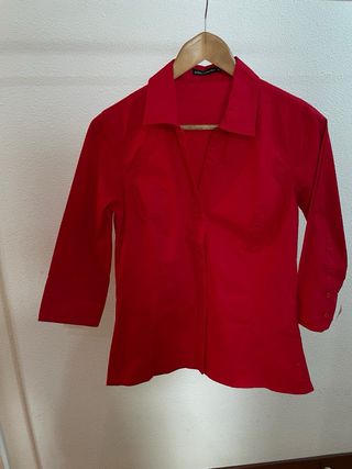 Camisa roja entallada. Queda muy bonita puesta. Está nueva. Tiene un poco de elástico. Medidas: -hombros 37cm -sisa 46cm -cintura 42cm -cadera 52cm -largo 64cm