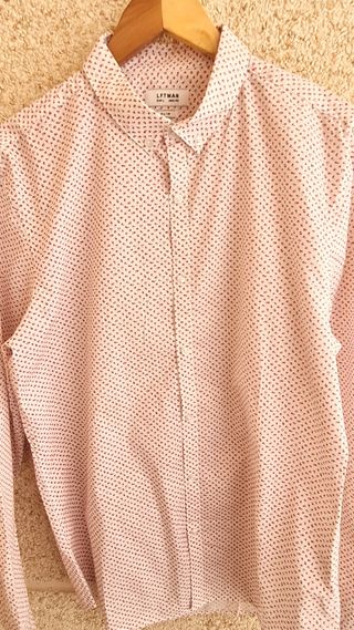 Camisa de hombre blanca con florecitas rojas. Corte ajustado stlim. Talla L de Lefties.