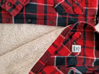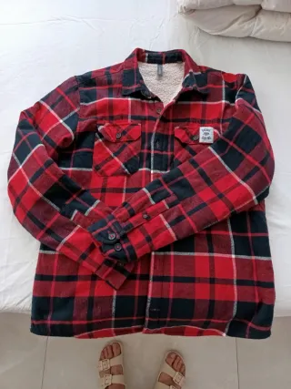 Camisa de cuadros con forro interior suave. - Diseño a cuadros en rojo y negro. - Cierre de botones. - Dos bolsillos en el pecho con botón. - Puños abotonados.