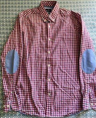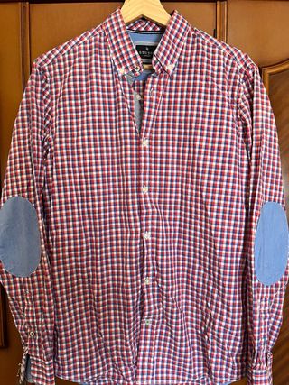 Preciosa camisa de cuadros en tonos rojos y azules. Está en muy buen estado y tiene coderas de color azul. - Es de manga larga. - Tiene un diseño a cuadros. - Incluye coderas. - En muy buen estado, podrás apreciarlo en mano. Venta en mano en Málaga capital, seriedad y formalidad.