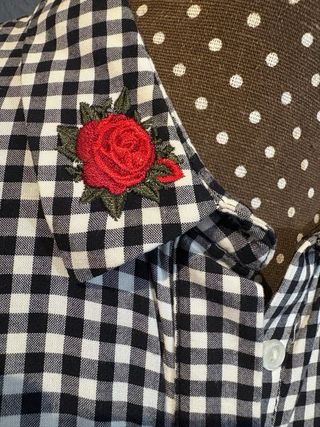 Camisa de manga larga con estampado de cuadros vichy. - talla S amplia por lo que es posible ir bien para una M también. ( si necesitas medidas, escríbeme) - Cuello camisero. - Cierre de botones. - Dos pequeños adornos rojos en el cuello bordados. - Letrero purpurina espalda “ wild Lolita”