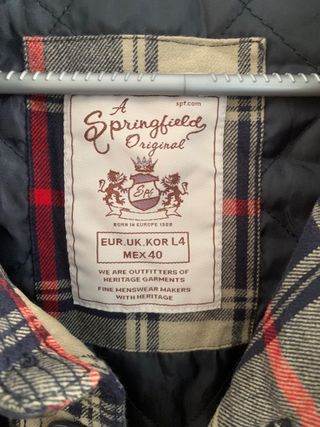 Camisa de Springfield con un diseño a cuadros en rojo y negro. Presenta un detalle bordado en la parte delantera. - Cuello en V. - Manga larga.