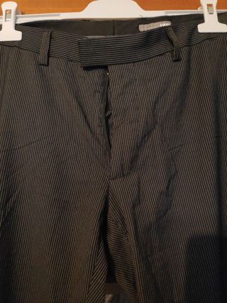 pantalón negro con rayas blancas de vestir, tela fina y muy suave de entretiempo, talla 50,aunque yo diría q talla menos como una 44/46. Regalo camisa Renoir de El Corte Inglés, talla 5,q será como una L/XL(44/46), bonito eatampado de cuadros en azul, blanco y rojo pálido, tela agradable al tacto. La regalo pq tiene el cuello rozado(ver última foto), pero se le puede dar la vuelta y darle una segunda vida a la camisa q el resto está en perfecto estado